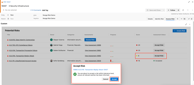 Click on "Accept Risk" if the risk is below your company’s threshold and no further action is needed.