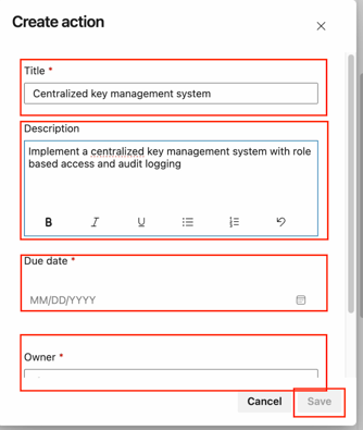Step 2.1 - Create a Risk treatment action by scrolling down and press the blue "+Create" button.