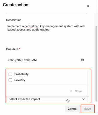 - Expected impact: if you do this - do you expect it to decrease the probability of the risk to happen or lower the severity, or both?