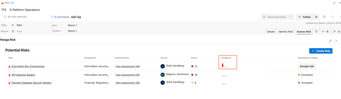 Step 4 - Monitor risks and Treatment actions statuses for a work item.