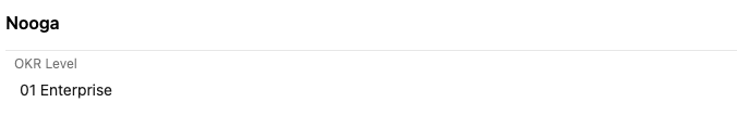 In the Objective work item form, under the Nooga group find the OKR Level field and set it to Enterprise.