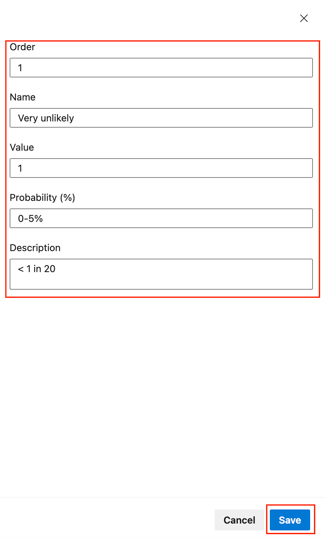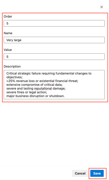 Set threshold levels by adding a number. This is the total risk score that limits the acceptance of any risk within the category and necessitates escalating the risk to additional stakeholders for review before it can be approved. Escalation paths for risks in multiple categories are always defined by the lowest number.