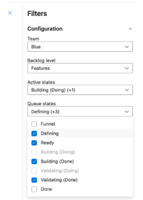States categorized as "Active" (doing) or "Waiting" (queued) based on board column configurations in Azure DevOps.